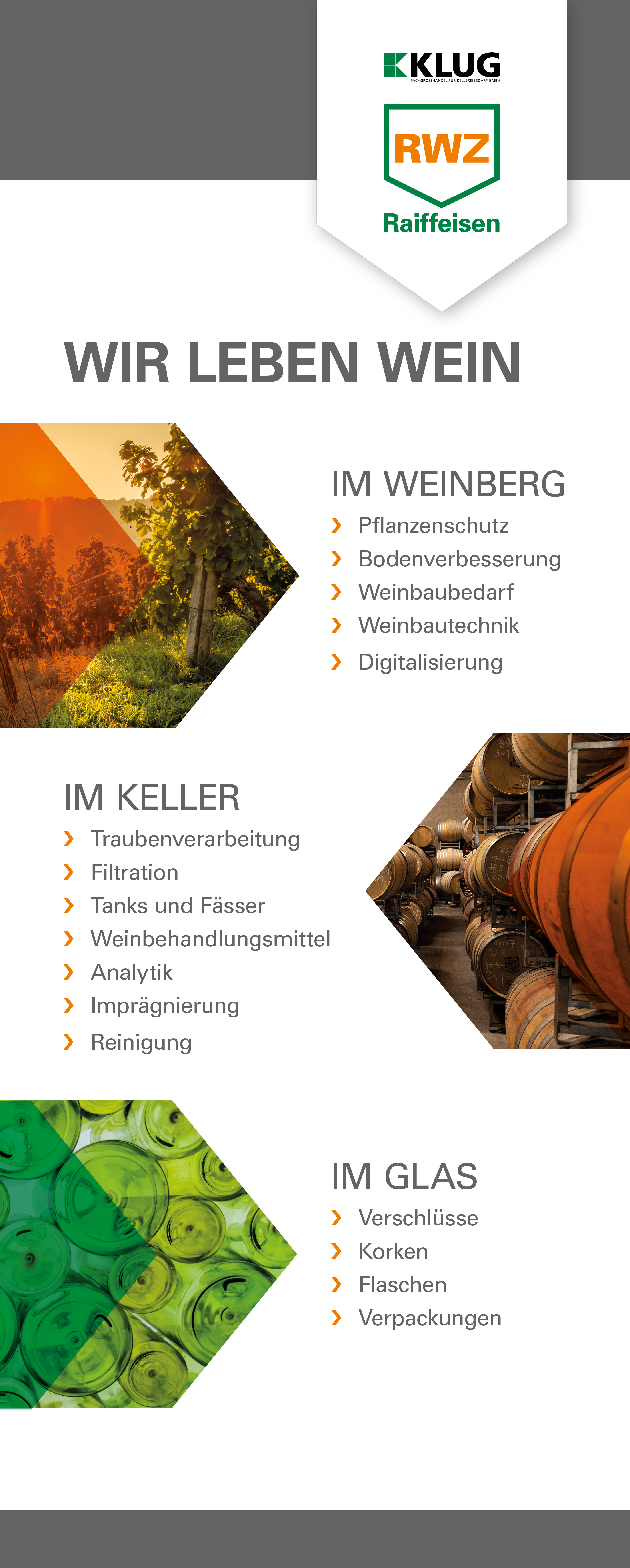 Die Raiffeisen Waren-Zentrale Rhein-Main eG (RWZ) und ihr Tochterunternehmen KLUG Fachgroßhandel für Kellereibedarf GmbH präsentieren sich gemeinsam unter dem Motto "Wir leben Wein – im Weinberg, im Keller, im Glas" auf den beiden größten deutschen Ausstellungen rund um Weinbau und Kellerwirtschaft. Der Konzern zeigt auf Ausstellungsflächen von rund 1.300 qm (AgrarWinterTage) bzw. 520 qm (Winzer-Service) alles, was Winzerinnen und Winzer im Weinberg und im Weinkeller benötigen: aktuelle Maschinen und Geräte für den Weinbau, Maschinen für den Ackerbau (nur AgrarWinterTage), Produkte zur Traubenverarbeitung, Weinbehandlung bis hin zur Verpackung sowie zahlreiche Systeme für ein digitalisiertes und optimiertes Farmmanagement.
