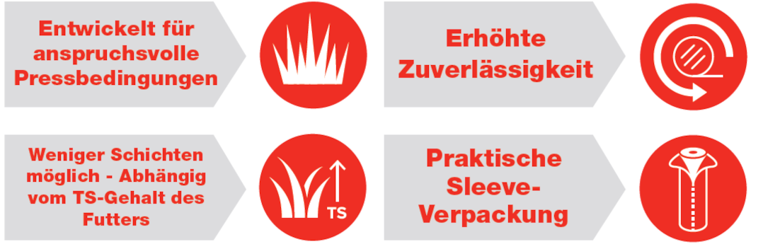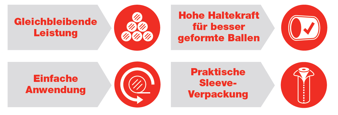 BaletiteGO ist eine Mantelfolie mit einer hohen Haltekraft, die für schwierige Pressbedingungen entwickelt wurde und es dem Anwender ermöglicht, weniger Schichten an Mantelfolie aufzutragen, um den Bindeprozess zu beschleunigen.