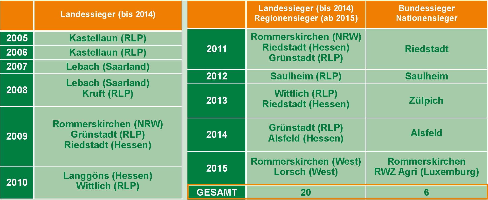 Übersicht der Gewinner