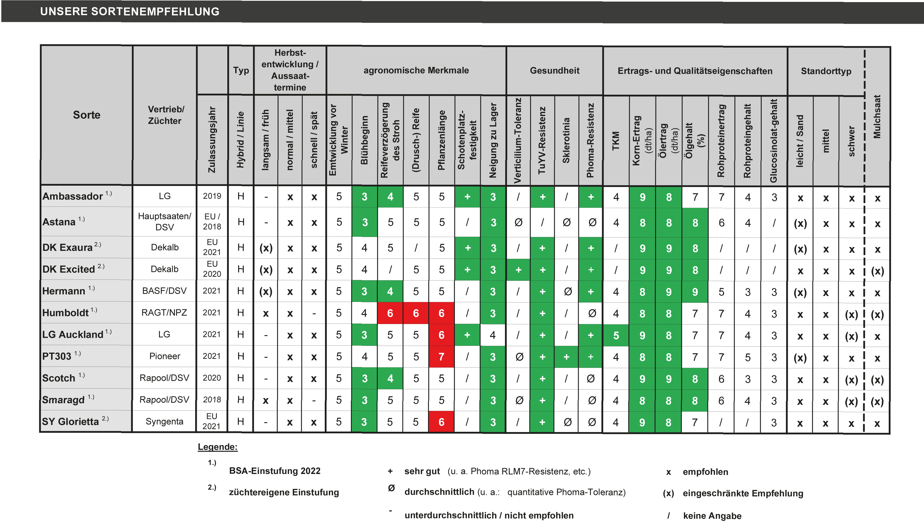 • Sehr hohes Korn- und Ölertragspotenzial gepaart mit einer breiten Standorteignung